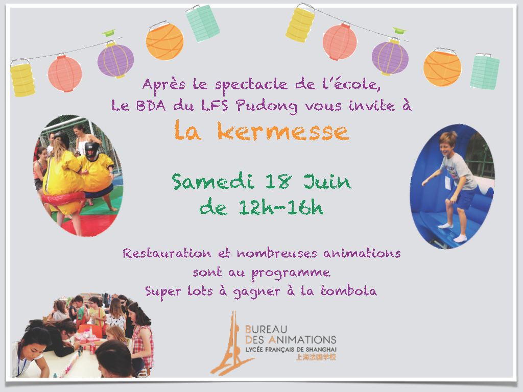 12h à 16H : kermesse de l’école organisée par le BDA de Pudong