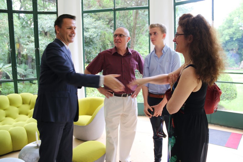 Les bacheliers ayant obtenu la mention Très bien ont été félicités par Monsieur le Consul, Axel Cruau, lors d’une cérémonie donnée en leur honneur à la résidence consulaire, organisée en collaboration avec Monsieur Guinebert et Mme Michelon-Tang de la Banque Transatlantique.