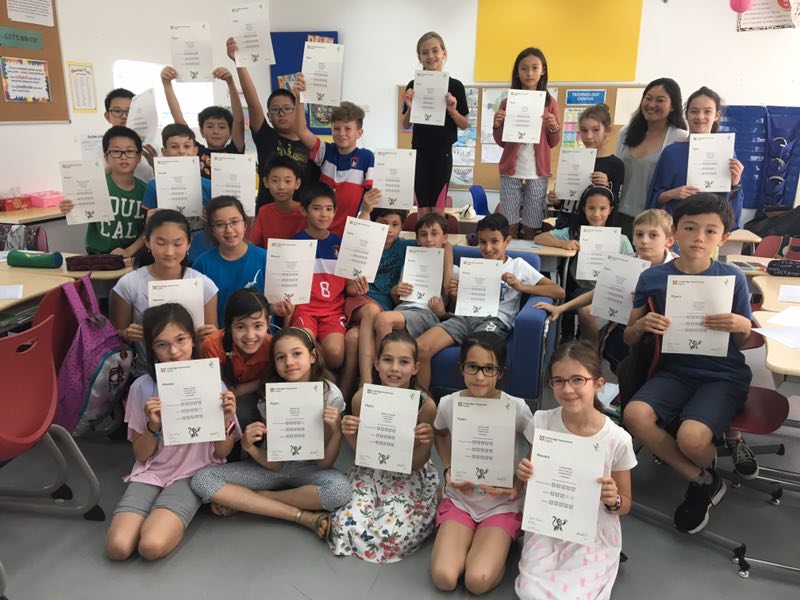 Mme Bronnert, avec les professeurs anglophones, a remis les diplômes Cambridge aux CE2 et CM2 qui ont passé le YLE sur les deux campus.