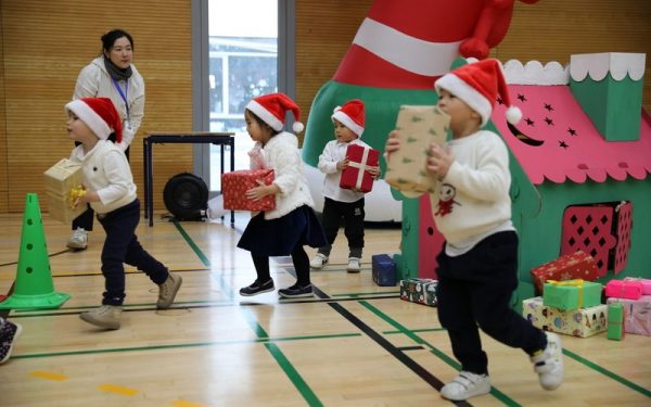 With their tiny Santa hats, our students rushed to fill Santa’s sleigh with gifts. It was a memorable show, with big smiles and little spills that had everyone laughing so hard. Small steps, but what a race!