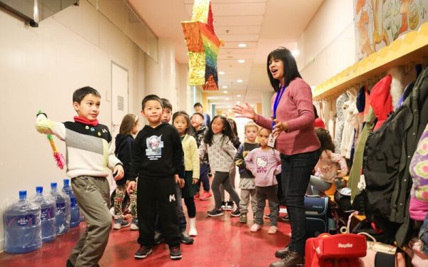 Ensuite, direction notre piazza centrale pour une superbe flashmob et bien sûr, pour le grand plaisir de nos élèves, nous avons accroché des piñatas dans les couloirs ! Les casser a sans aucun doute été le moment phare de leur journée, et elle était remplie de petits accessoires et de cadeaux pour eux.