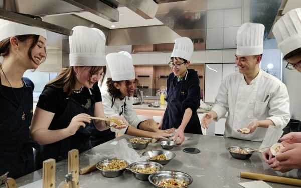 En guise de coup d’envoi pour ce projet, une sortie commune avait lieu en ville : tous les élèves participant à l’échange étaient libérés des cours ce jour, pour participer à un cours de cuisine chinoise préparant répartis en équipes du « wok » et des « dumplings » ; c’est à cette occasion qu’entre autres, nous avons appliqué aux nouilles un massage à la sauce de soja, et nous avons roulé la pâte pour confectionner des rouleaux de printemps – logique ! Ensuite, nous avons fait une partie de bowling – super ! Avoir organisé cette activité était une excellente idée pour briser la glace, tout en créant le sentiment d’appartenance à un seul groupe selon la devise « ensemble, c’est mieux » !