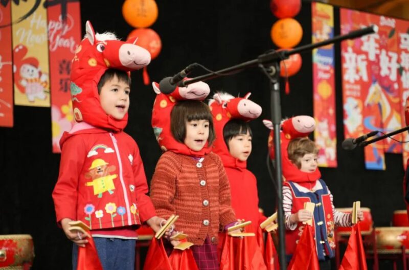 Danses inspirées du cheval, prestations instrumentales traditionnelles et percussions puissantes se sont succédé, révélant l’engagement et l’énergie des élèves. Un spectaculaire numéro de changement de masques est venu marquer les esprits, avant que les chants du Nouvel An ne rassemblent progressivement toutes les classes sur scène.
