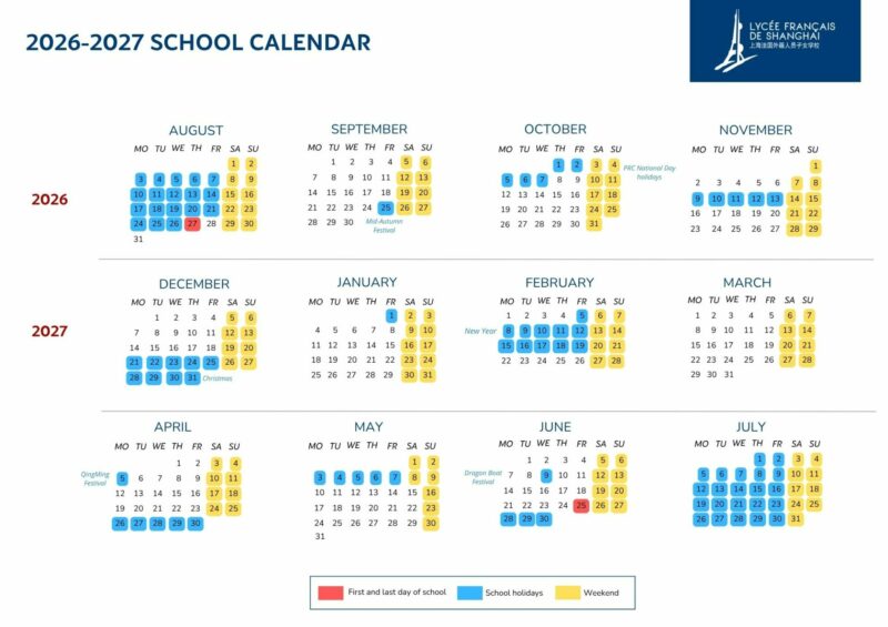 Février 2027Vacances du Nouvel an chinois : du Ven 5 (inclus) au Dim 21 Février