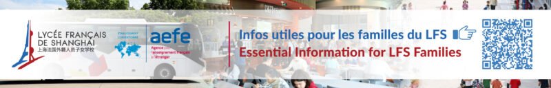 Le Lycée Français de Shanghai est une école internationale qui propose un environnement international et multiculturel unique, avec des élèves issus de 60 nationalités. En proposant un cursus varié, nous permettons à nos élèves de définir leur propre projet éducatif et de se construire un chemin vers la réussite, quelle que soit leur origine culturelle. Avec notre offre linguistique, nos résultats académiques excellents, nos nombreuses activités extrascolaires, dans un réseau d’écoles d’exception, nous faisons la différence ! Découvrez les atouts du LFS !