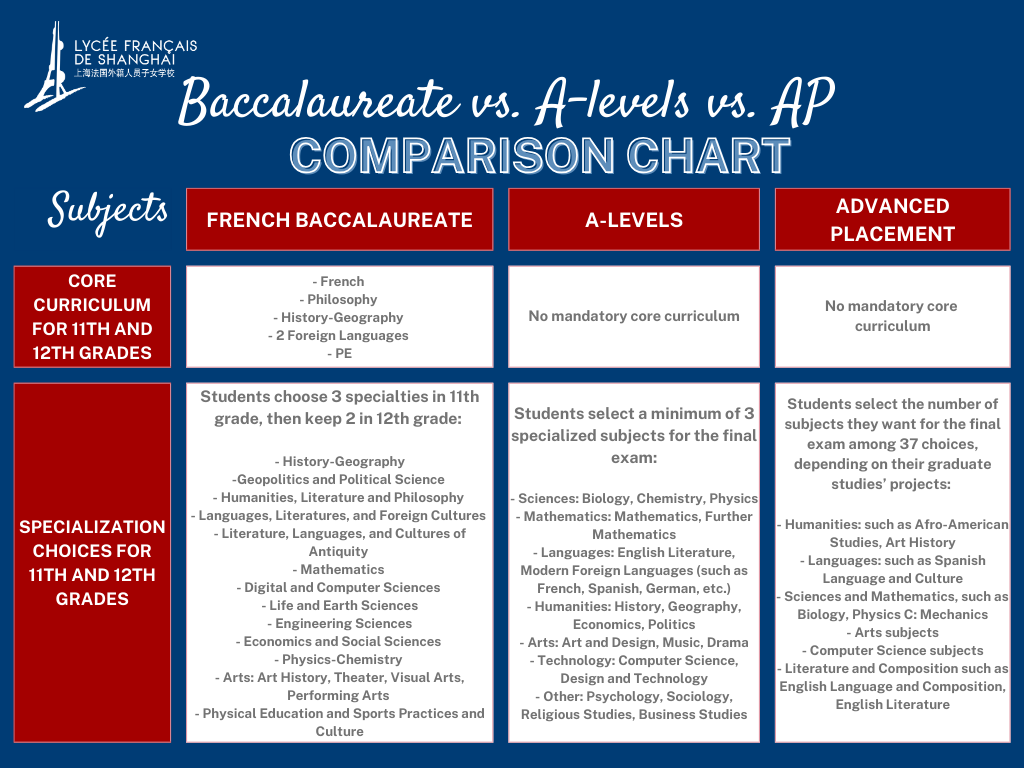 Shanghai French School also offers a specialization within the French Baccalaureate known as the International French Baccalaureate (BFI).